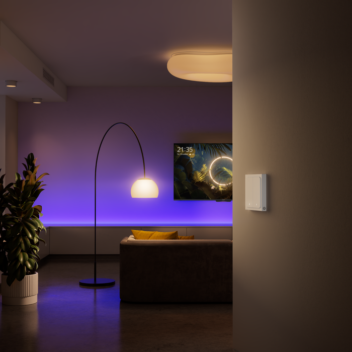 Беспроводные умные выключатели позволяют управлять умными устройствами, в том числе световыми, когда неудобно это делать голосом: например, нужно отдать команду из коридора, а Станция стоит в гостиной, либо когда кто-то спит в комнате. Они устанавливаются без привязки к электросети в любом месте и доступны с одной клавишей или двумя.