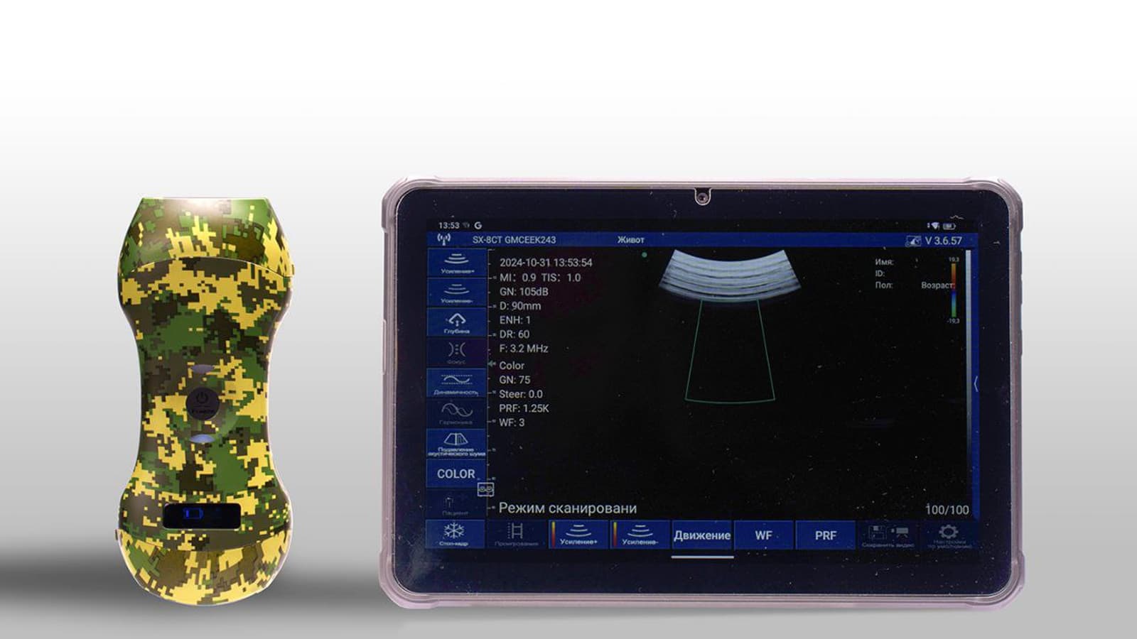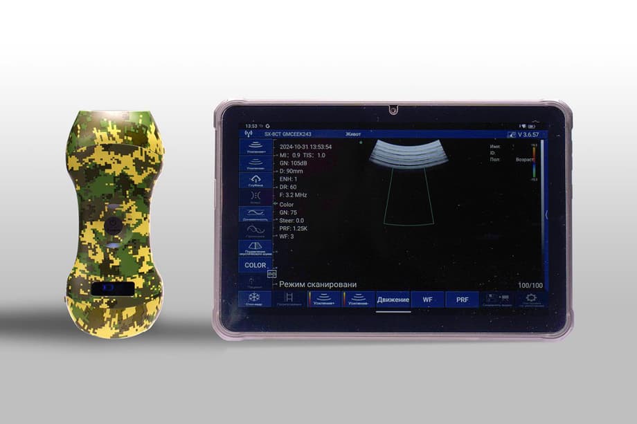 «Калашников» представил на международном научно-практическом форуме «Огнестрельная рана. Хирургия повреждений» новейший портативный аппарат УЗИ. Он защищён от пыли и влаги, обладает ударопрочностью и не нуждается в проводах. Специалисты концерна говорят, что разработка подходит для применения в фронтовых условиях, и в ближайшее время отправят ряд таких аппаратов к российским военным на апробацию и опытную эксплуатацию.