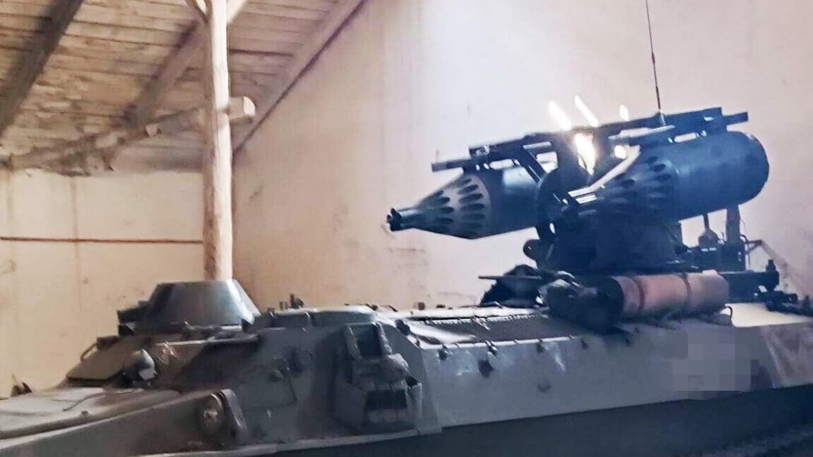 В Сети появились кадры модернизированной «мотолыги» — многоцелевого транспортера-тягача МТ-ЛБ. Гусеничную машину оснастили двумя блоками неуправляемых ракет УБ-32, превратив в систему залпового огня ближнего действия.