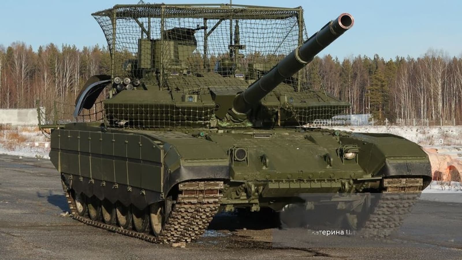 Аналитик добавил, что танки начинают оснащаться усовершенствованным комплектом противокумулятивно-противодронной защиты, располагающим как штатными гибкими сетчатыми экранами надбашенного пространства и «козырьком» верхней полусферы башни, так и резинотканевыми лопухами, расположенными на нижних кромках бортовых бронелистов башни.