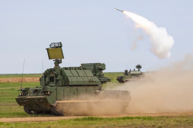 По прибытии в район военнослужащие расчета приводят комплекс из походного положения в боевое, проводят мониторинг воздушного пространства в районе действия артиллеристов.