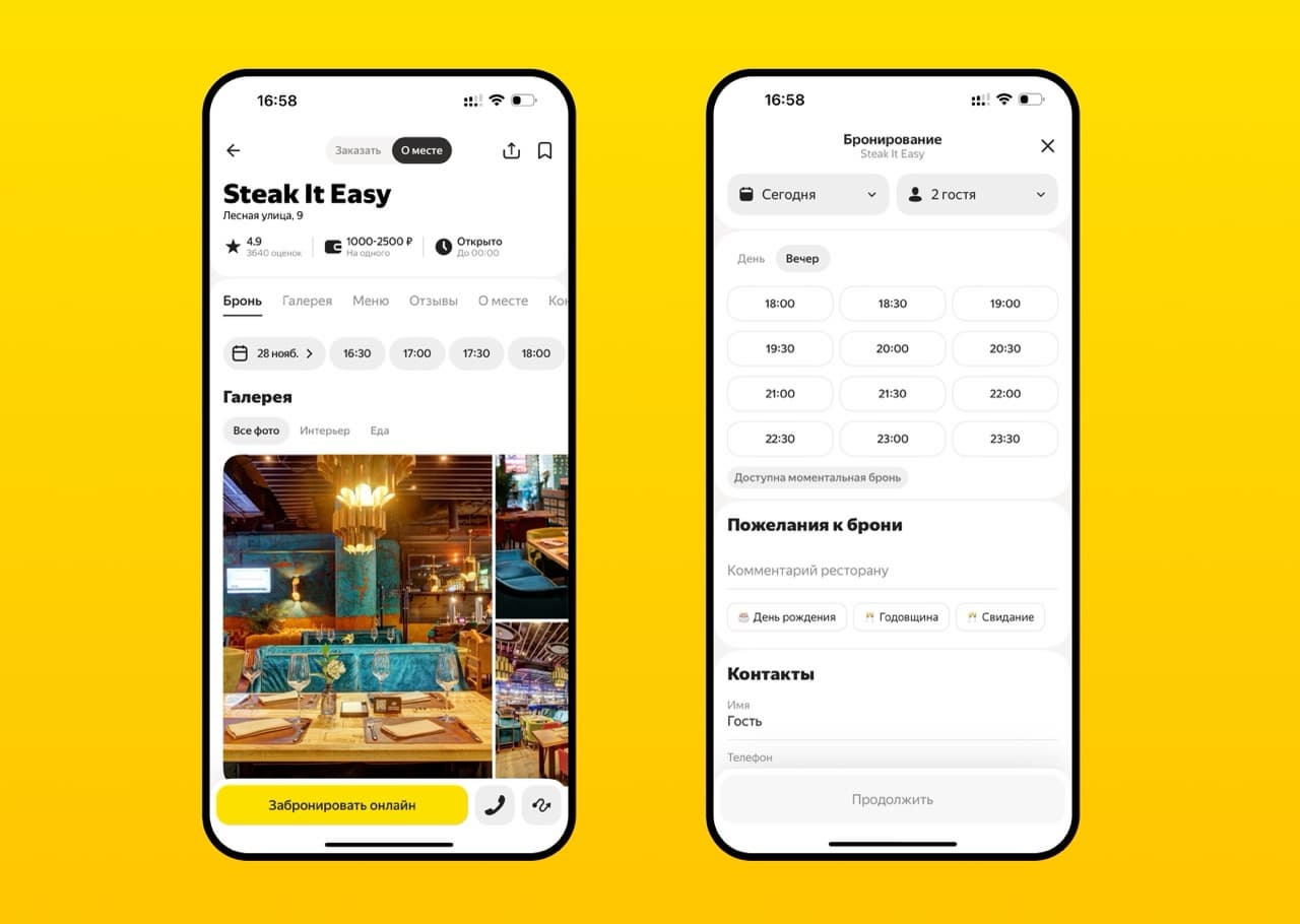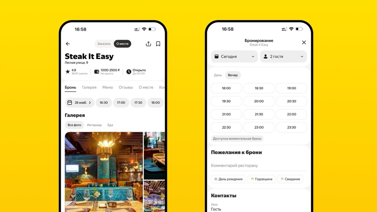 «Яндекс Еда» запускает функцию онлайн-бронирования столиков в ресторанах с ноября