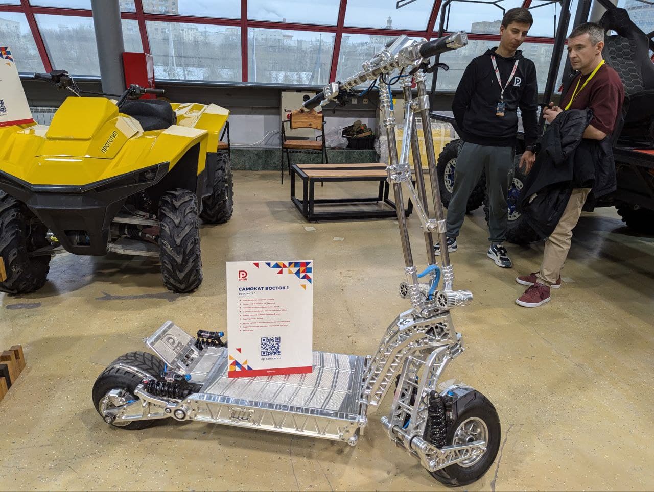 Пиковая мощность двигателя у «Востока 1» составляет 25 кВт. Ход подвески — 160 мм. Есть гидравлическая дисковая система. Мотор-колесо имеет систему активного охлаждения. С нетерпением ждём испытаний!