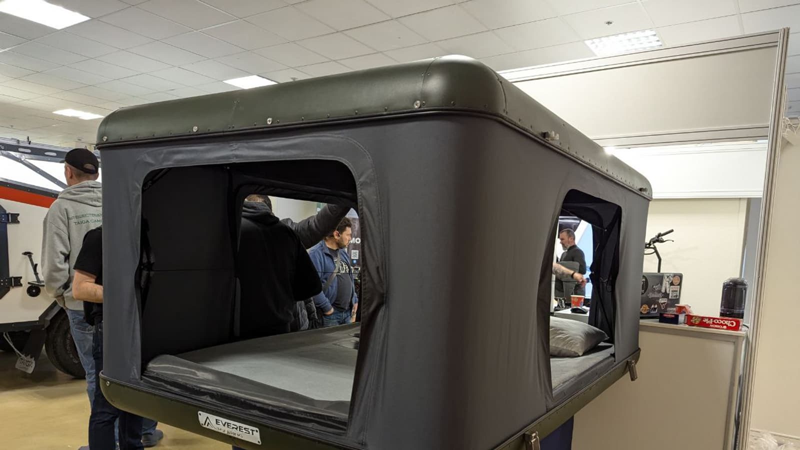 На проходящей в столице выставке «Вездеходер» помимо различной транспортной техники: вездеходов, снегоходов, электросамокатов были представлены и различные аксессуары для активного отдыха. На стенде компании Everest Touring демонстрировались палатки Roofer. Одну из них можно эксплуатировать в обычных условиях, а с другой — отправиться в Арктику.