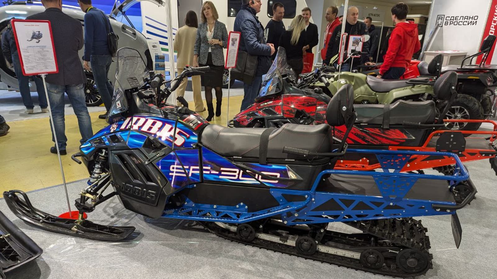 IRBIS SF 300 вместе с обновлённым утилитарным снегоходом «Ирбис Тунгус 500 L» и другим транспортом для любителей активного образа жизни от «Ирбис Моторз» поучаствовал в выставке «Мотозима 2024» в Москве.