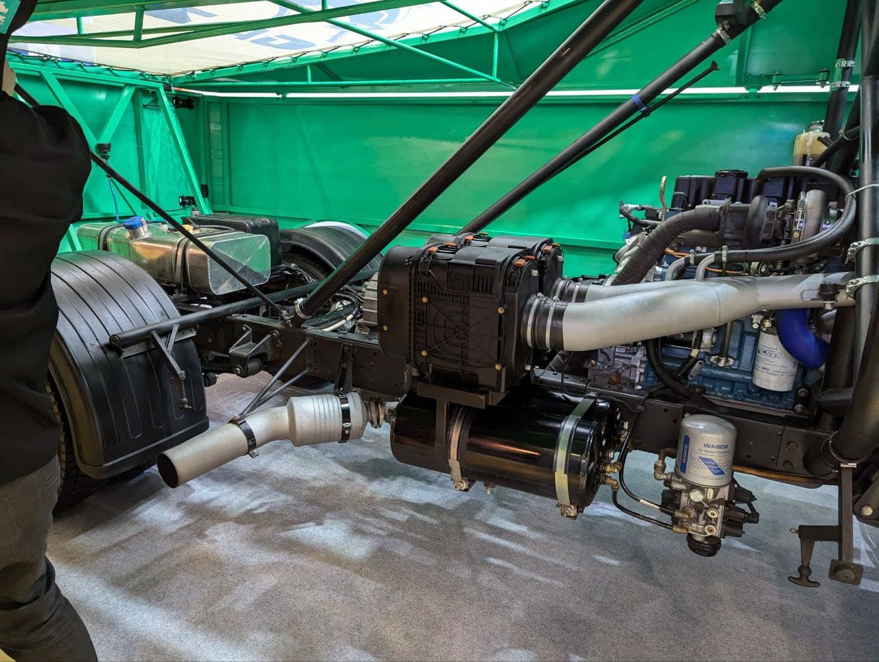 С мотором соединяется 5-ступенчатая МКП, взятая конструкторами от автобуса «Вектор NEXT». Рама и передний мост у «Валдая Спорт» позаимствованы у полноприводной «ГАЗели», а задний мост с пневмоподвеской — от автобуса «Газель City».
