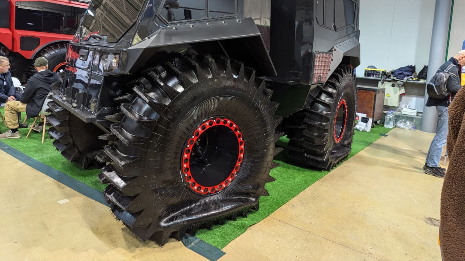 Также у новинки переломная рама, которая является отличительной особенностью вездеходов этой команды. Шины низкого давления, колёса с высоким запасом плавучести объёмом 1200 литров каждое.