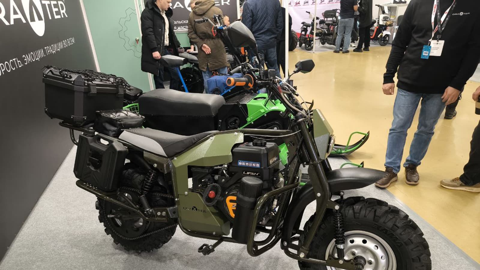 Компания Draxter специализируется на производстве мотоснегокатов, садовой техники и оборудования для измельчения древесины. Внедорожный мотоцикл компании создан на основе 20-сильного одноцилиндрового двигателя Lifan KP460E с воздушным охлаждением. Мотор работает на бензине и имеет карбюраторную систему питания.