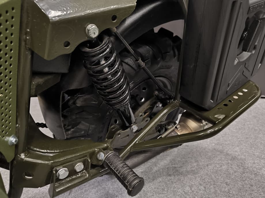 Задняя ось мотоцикла приводится в движение цепью, а передача тяги осуществляется через вариатор типа «Сафари».