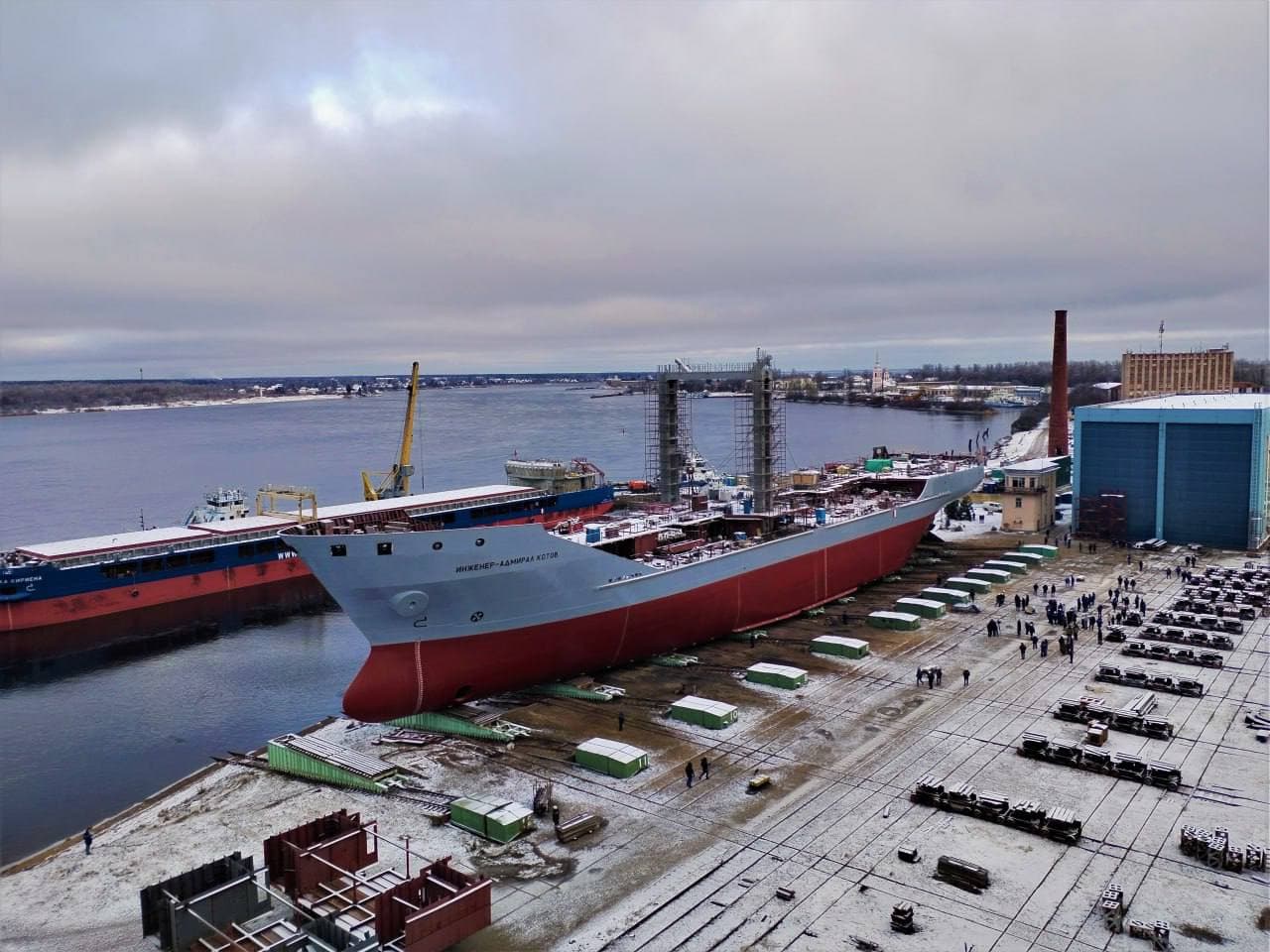 На Невском судостроительно-судоремонтном заводе ОСК на воду спустили средний морской танкер «Инженер-адмирал Котов» проекта 23130. Он станет третьим танкером проекта, который не имеет аналогов на территории Российской Федерации.