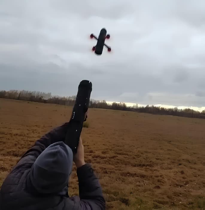 В ТПК размещён малогабаритный дрон-перехватчик с четырьми высокоэффективными бесколлекторными двигателями, обеспечивающими изделию максимальную скорость в горизонтальном полёте до 180 км/ч. При ёмком литий-полимерном аккумуляторе радиус действия — порядка 1000 м в благоприятной метеорологической обстановке, в безветренную погоду.