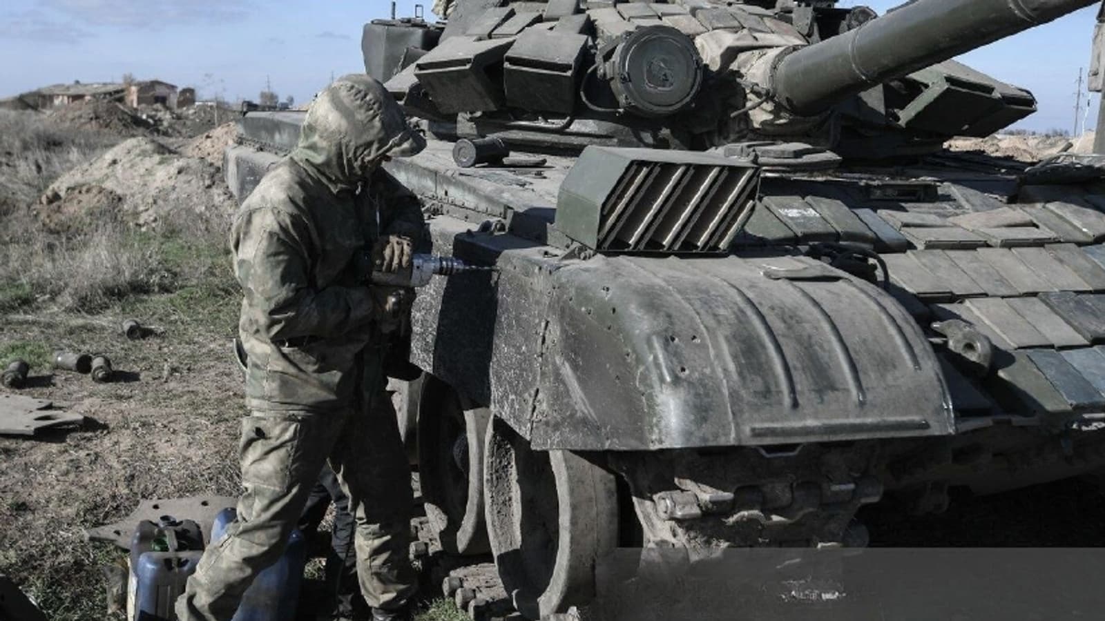 В Сети засветился процесс монтажа элементов динамической защиты 4С24 на «голые» расконсервированные» Т-72А в полевых условиях. Со скул башни изъяли направляющие дымовых гранатометов 902А, их можно заметить на надгусеничной полке и на земле слева, а также установлены элементы 4С22 «Контакт-5» для более плотного перекрытия её бортовых проекций.