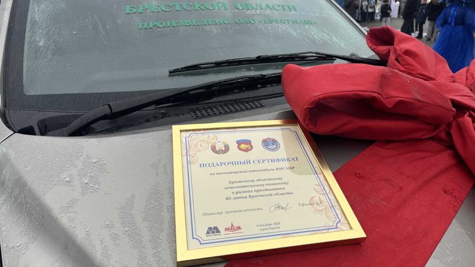 Ну и какой же праздник без подарка? От имени промышленного комплекса руководству легендарной белорусской области передан сертификат на одну из лучших моделей техники предприятий Минпрома – пассажирский автомобиль BMG.