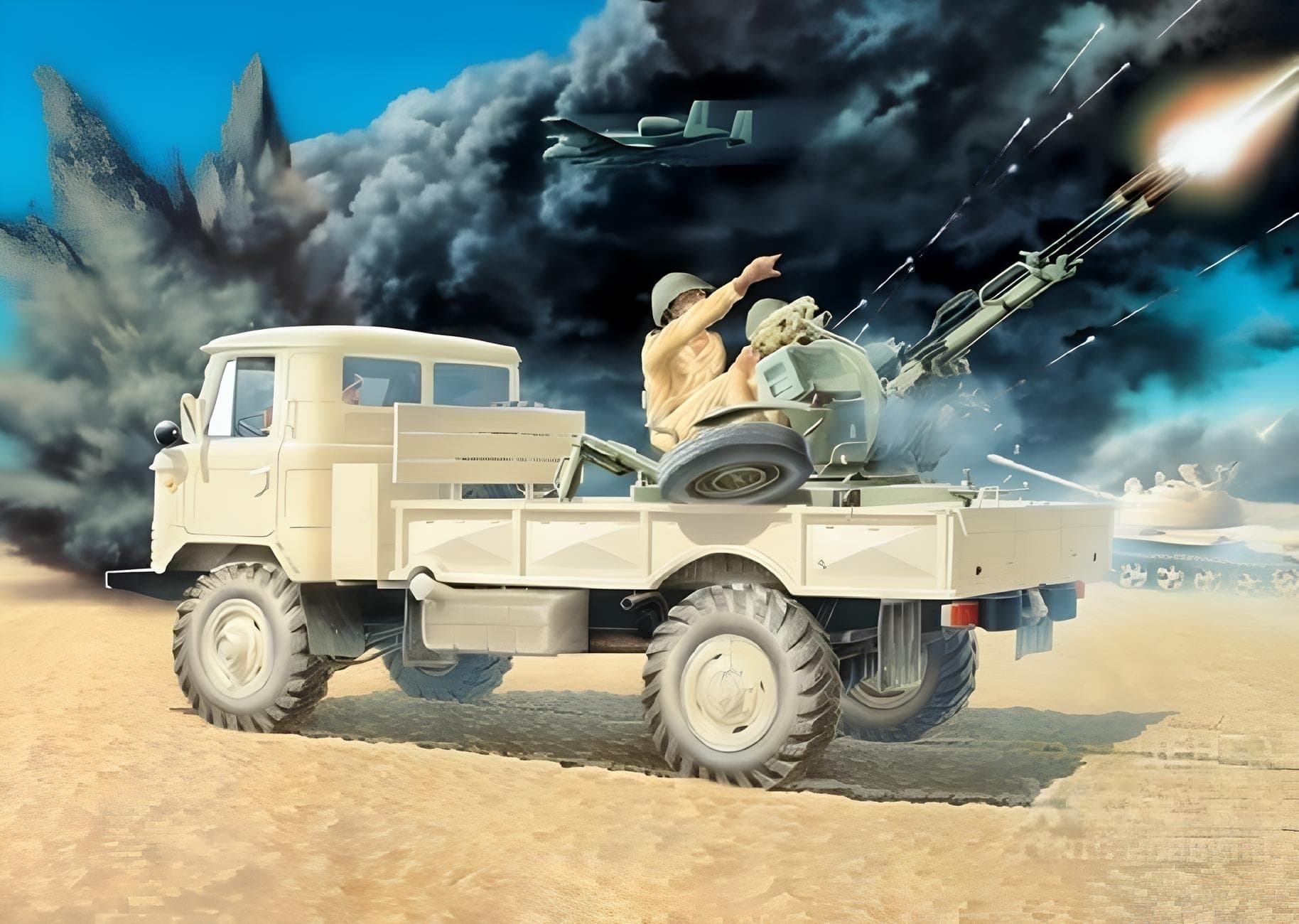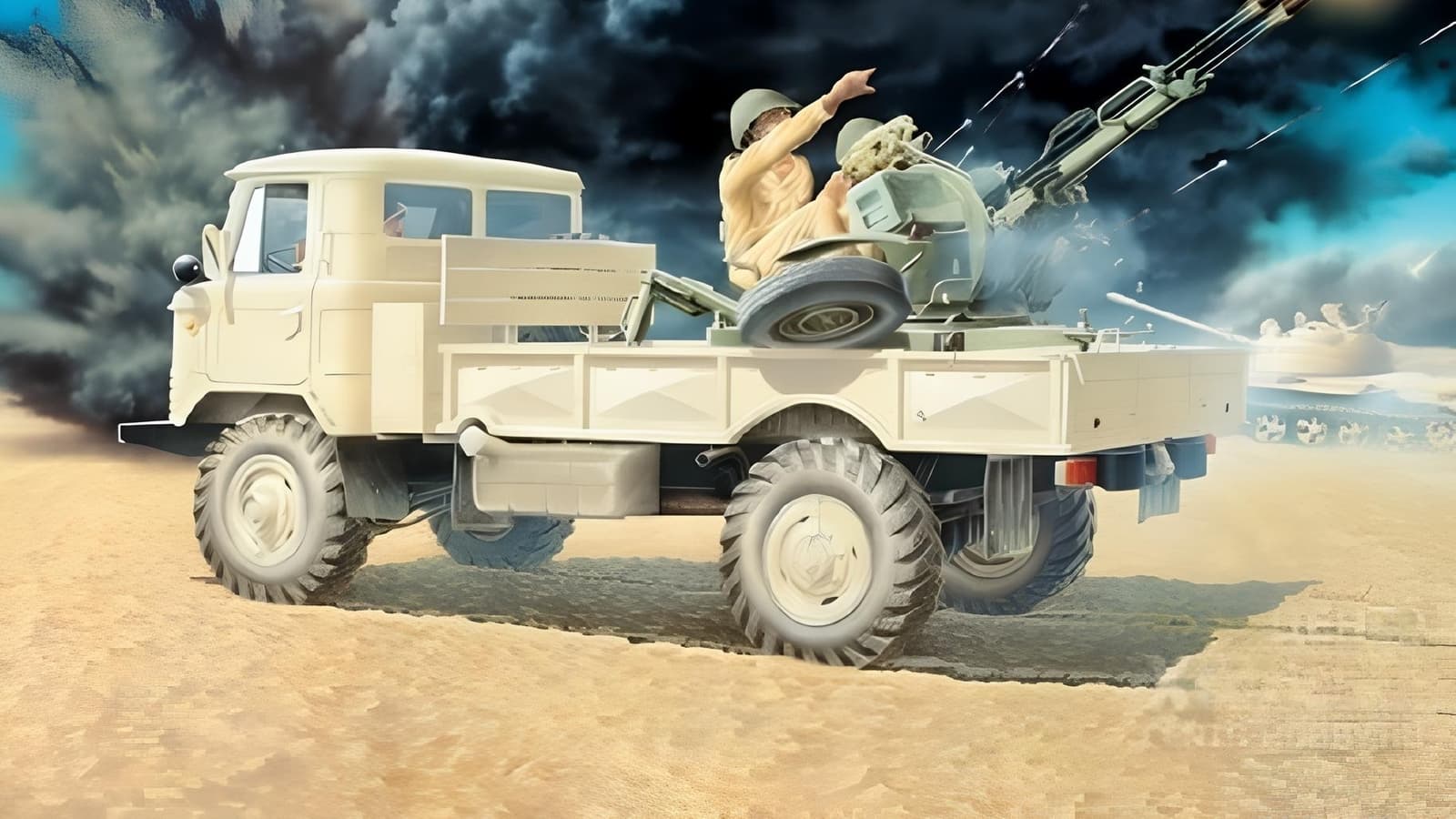 В Сети появились кадры самопальной зенитной установки на базе советского вездехода ГАЗ-66 с пулеметами 7,62-мм «Максим». При этом их скомпоновали не в один ряд, а квадратом для повышения плотности огня.