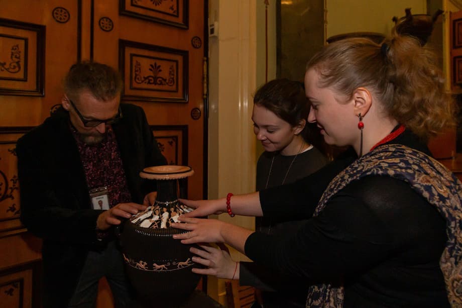 В Двадцатиколонном зале музея теперь доступна копия античной вазы, созданная с использованием 3D-принтера. Это новшество позволяет людям с ограниченными возможностями по зрению прикоснуться к произведению искусства и ощутить его уникальные детали.
