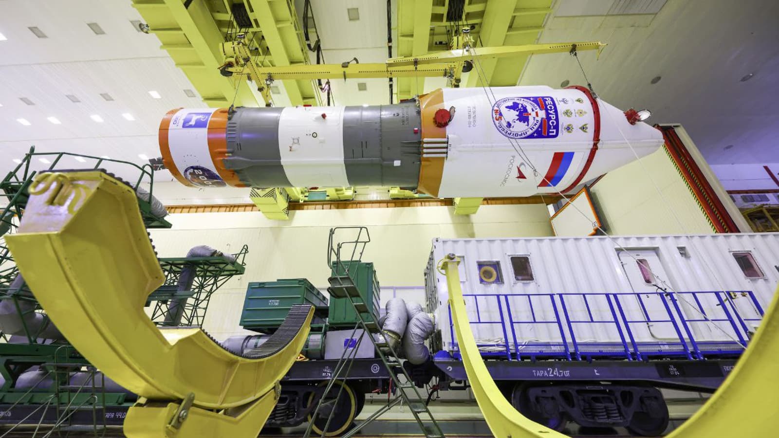 На космодроме Байконур завершили сборку «пакета» ракеты-носителя «Союз-2.1б» для запуска космического аппарата дистанционного зондирования Земли «Ресурс-П» № 5. Об этом сообщила пресс-служба Роскосмоса.