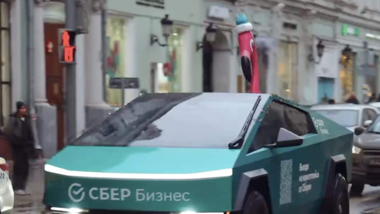 В воскресенье, 22 декабря с 14:00 до 17:00 в Москве будет курсировать новогодний транспорт от «СберБизнеса» — автомобиль Tesla Cybertruck, украшенный розовыми фламинго.