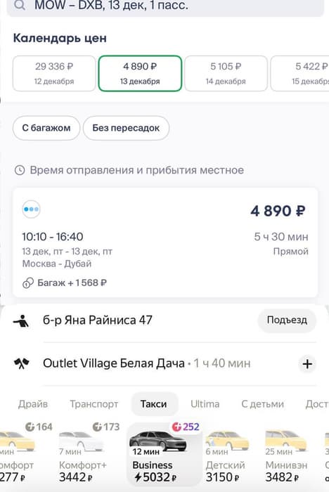 Во время снегопада в Москве 12 декабря билеты в Дубай стоили дешевле, чем такси в Москве.