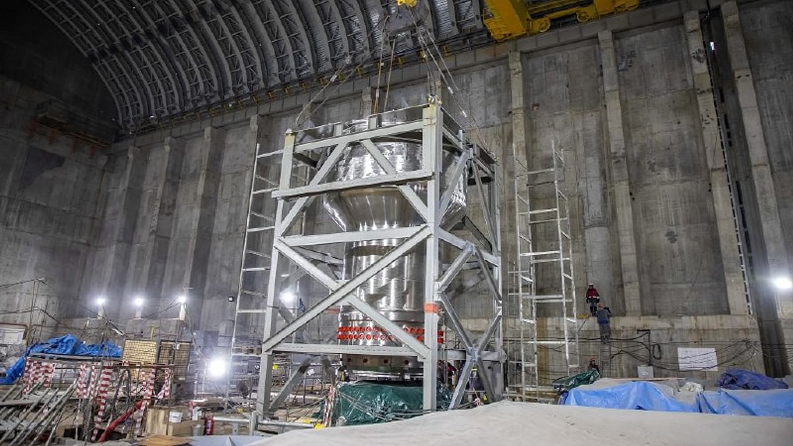 Монтаж провели с высокой точностью, отклонение от горизонта не превышало 1 мм на 1 метр. Также установлены барабаны для свежих и отработавших сборок, вес каждого из которых составляет 16 тонн.