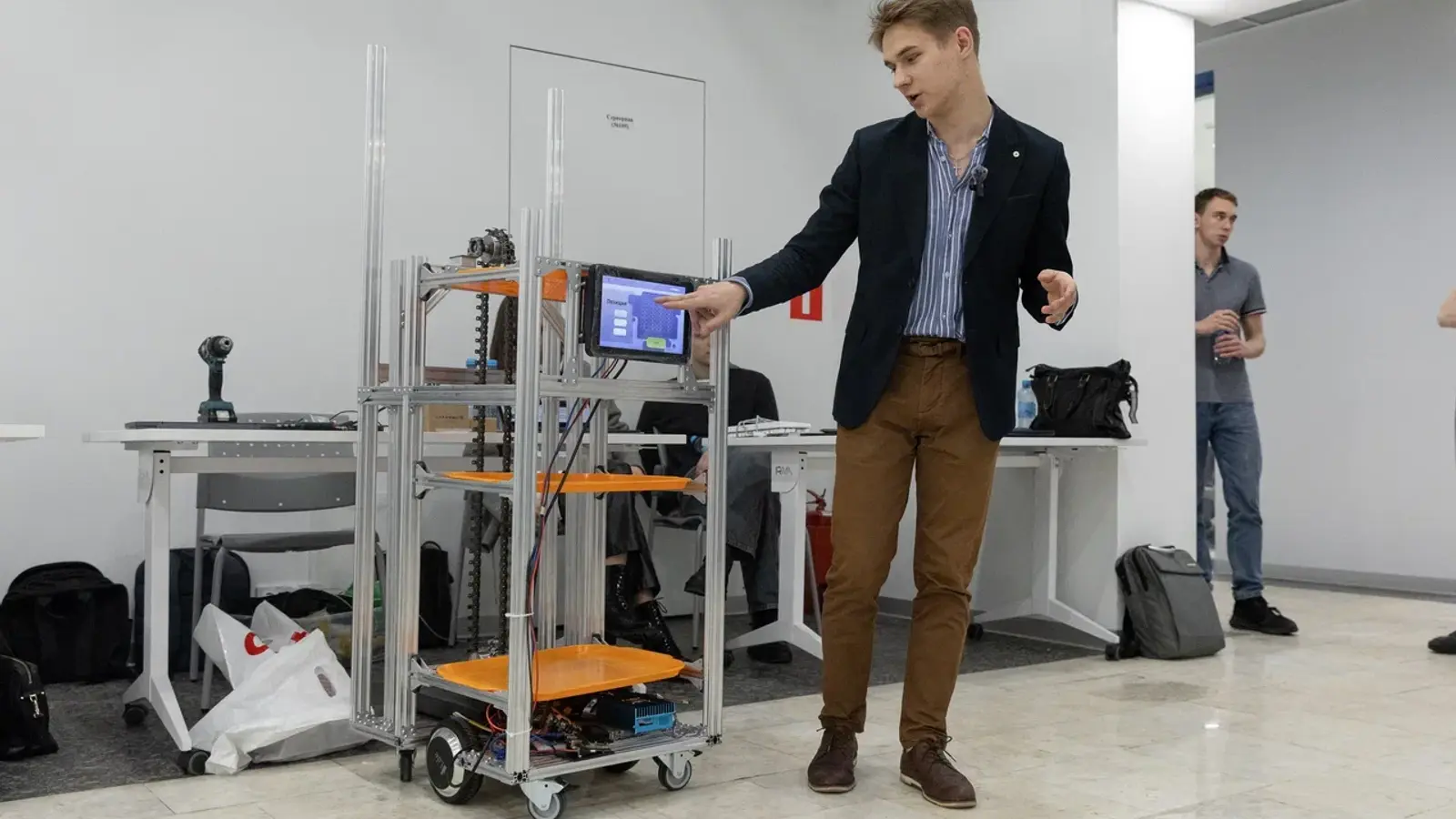Группа студентов Национального исследовательского ядерного университета МИФИ под руководством Максима Болотова, магистранта Высшей инжиниринговой школы МИФИ, создала прототип робота-официанта, который может самостоятельно перемещаться по залу кафе или ресторана и доставлять заказы посетителям. Для ориентации в пространстве у робота есть лидар — лазерный локатор, а также 3D-видеокамера.