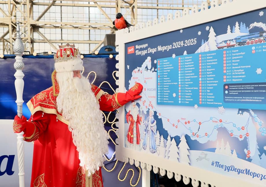Железнодорожники подготовили специальный поезд для Деда Мороза. Это празднично оформленная передвижная резиденция, состоящая из салона-приёмной, сказочной деревни для игр и квестов, кукольного театра, лавки с сувенирами, ресторана и буфета для чаепитий. Во главе поезда находится красивый паровоз, который придаёт ему особый шарм и атмосферу.