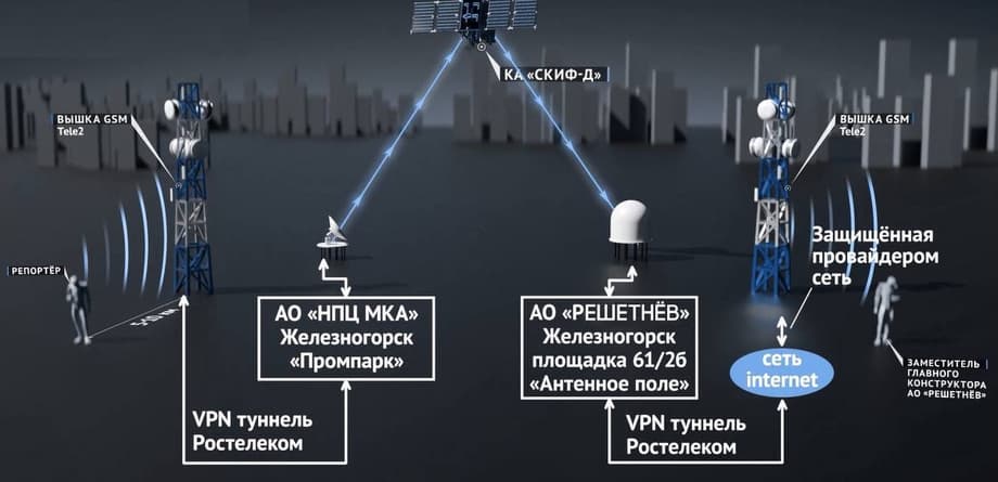 Для видеозвонка были задействованы контрольные земные станции командно-измерительного комплекса в АО «РЕШЕТНЁВ» и Научно-производственном центре «Малые космические аппараты», две базовые станции сотовой связи и защищённая провайдером сеть интернет.