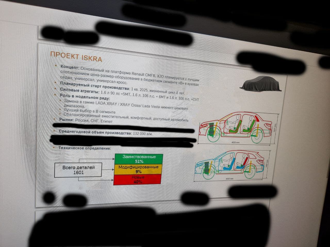 В конструкции автомобиля, состоящей из 1601 детали, 51% представляют собой компоненты, которые были заимствованы, 9% — модифицированные, а 40% — это новые разработки.