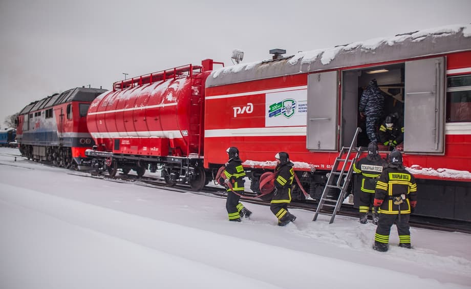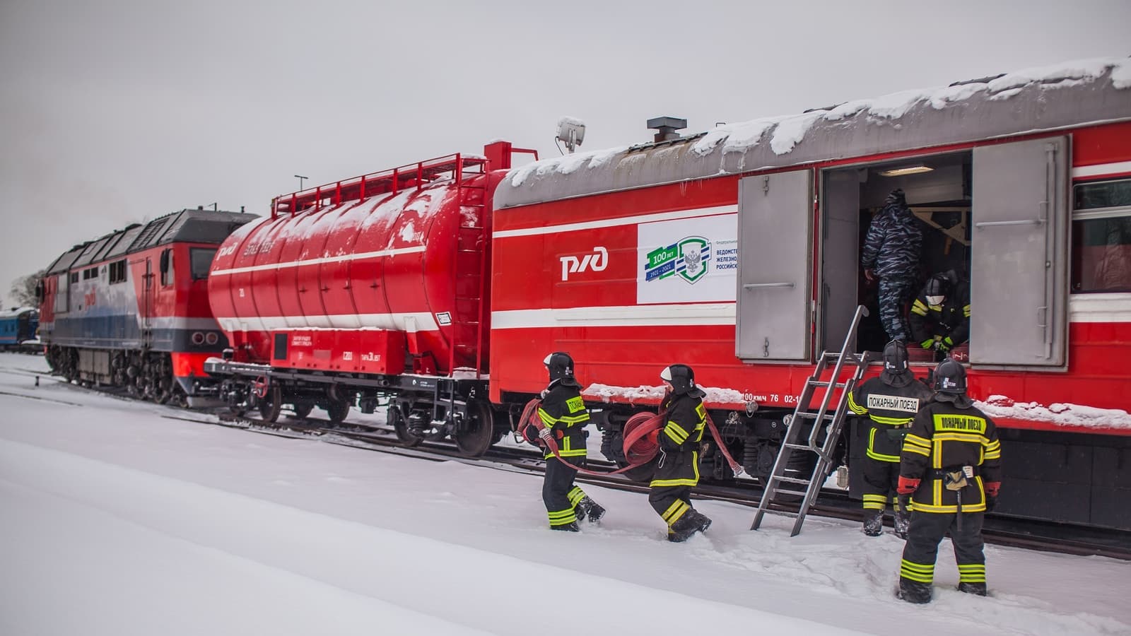 Такие пожарные поезда оперативно реагируют на сигналы о ЧС и направляются к месту происшествия. Экипаж тушит огонь и ликвидирует последствия аварий, включая утечки опасных веществ.