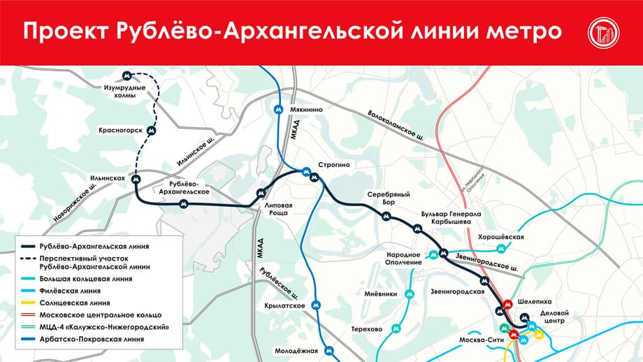 Продолжится строительство линии метро «Рублево-Архангельская». Первые станции этой линии будут открыты в 2026 году, отметил Сергей Собянин.