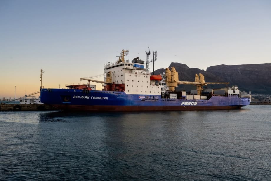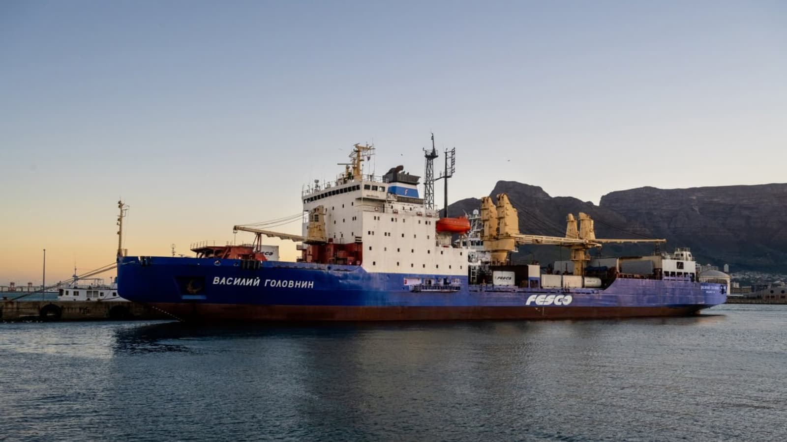 Дизель-электроход «Василий Головнин» транспортной группы Fesco, входящей в состав госкорпорации «Росатом», 14 января начал свой путь из Кейптауна в седьмую экспедицию к берегам Антарктиды. Судно направляется с грузом для индийских научно-исследовательских станций.