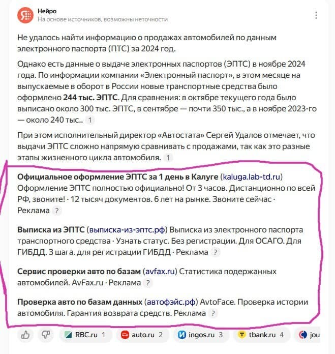 «Яндекс» сообщил, что рассматривает разные подходы к развитию функциональности «Нейро». Если результаты тестов окажутся успешными, компания планирует официально объявить о запуске рекламных мест в ИИ-сервисе.