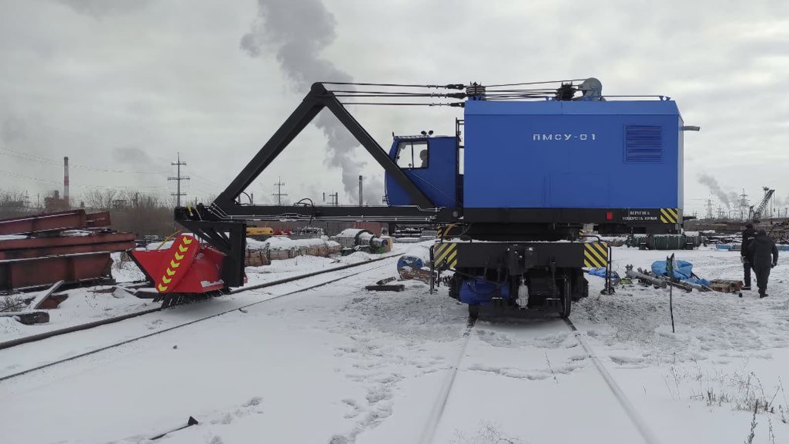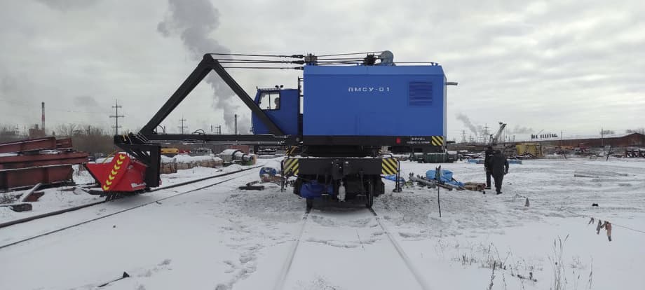 На предприятии «Челябкрансервис» создали четырехосную машину ПМСУ-01 для уборки снега. Она работает на базе крана ЭДК-25, его стрелу заменили снегоуборочной щеткой.