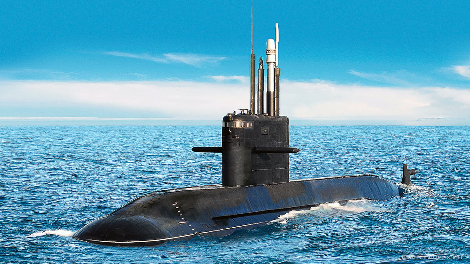 Объединённая судостроительная корпорация (ОСК) представила неатомную подводную лодку четвертого поколения «Амур 1650» проекта 677Э. Лодка может нести как торпедное, так и ракетное оборудование.