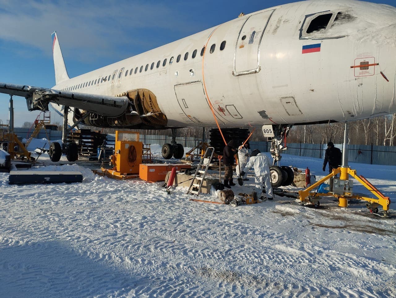 Двигатели CFM56, навесное оборудование, стойки шасси и бортовая электроника уже демонтированы, как и внутреннее оборудование пассажирского салона. Элементы направлены в Екатеринбург для оценки возможности их дальнейшего использования в парке авиакомпании.