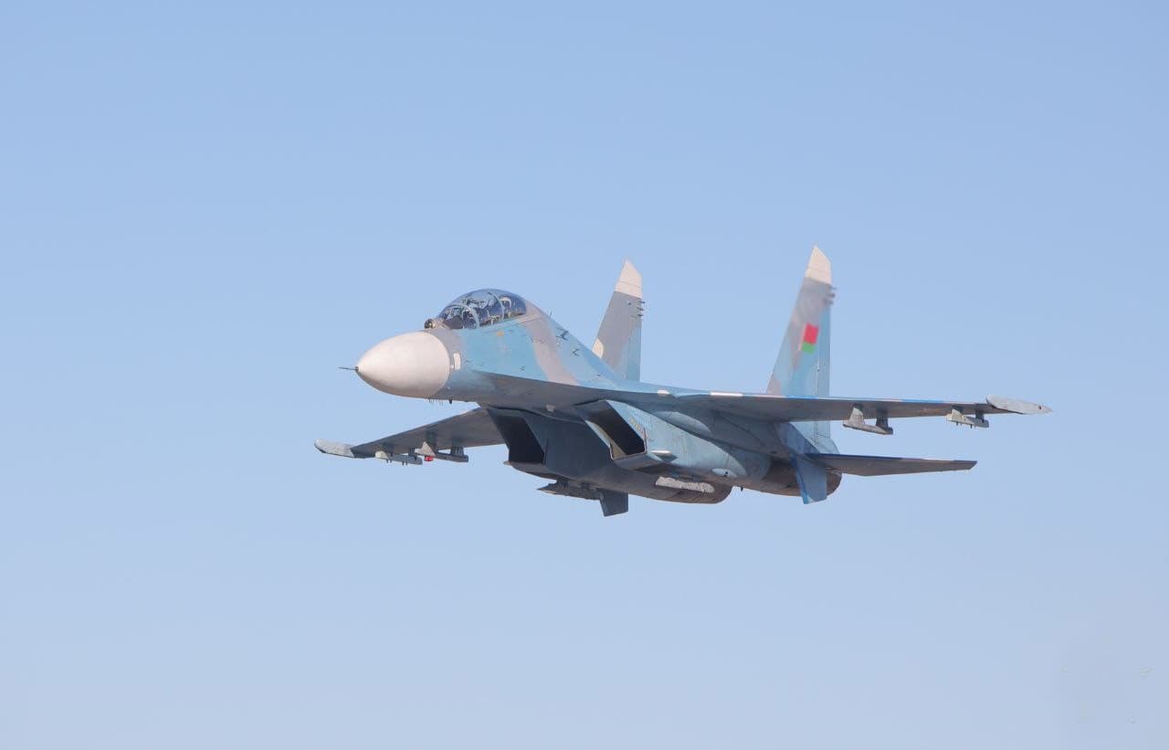 Летчики ВВС Белоруссии отработали учебно-боевые маневры на российских тяжёлых многоцелевых истребителях поколения 4++ Су-30СМ. Пилоты оттачивали навыки в небе над аэродромом 61-й истребительной авиабазы в Барановичах. Об этом сообщило Военное информационное агентство ВС Белоруссии «Ваяр».