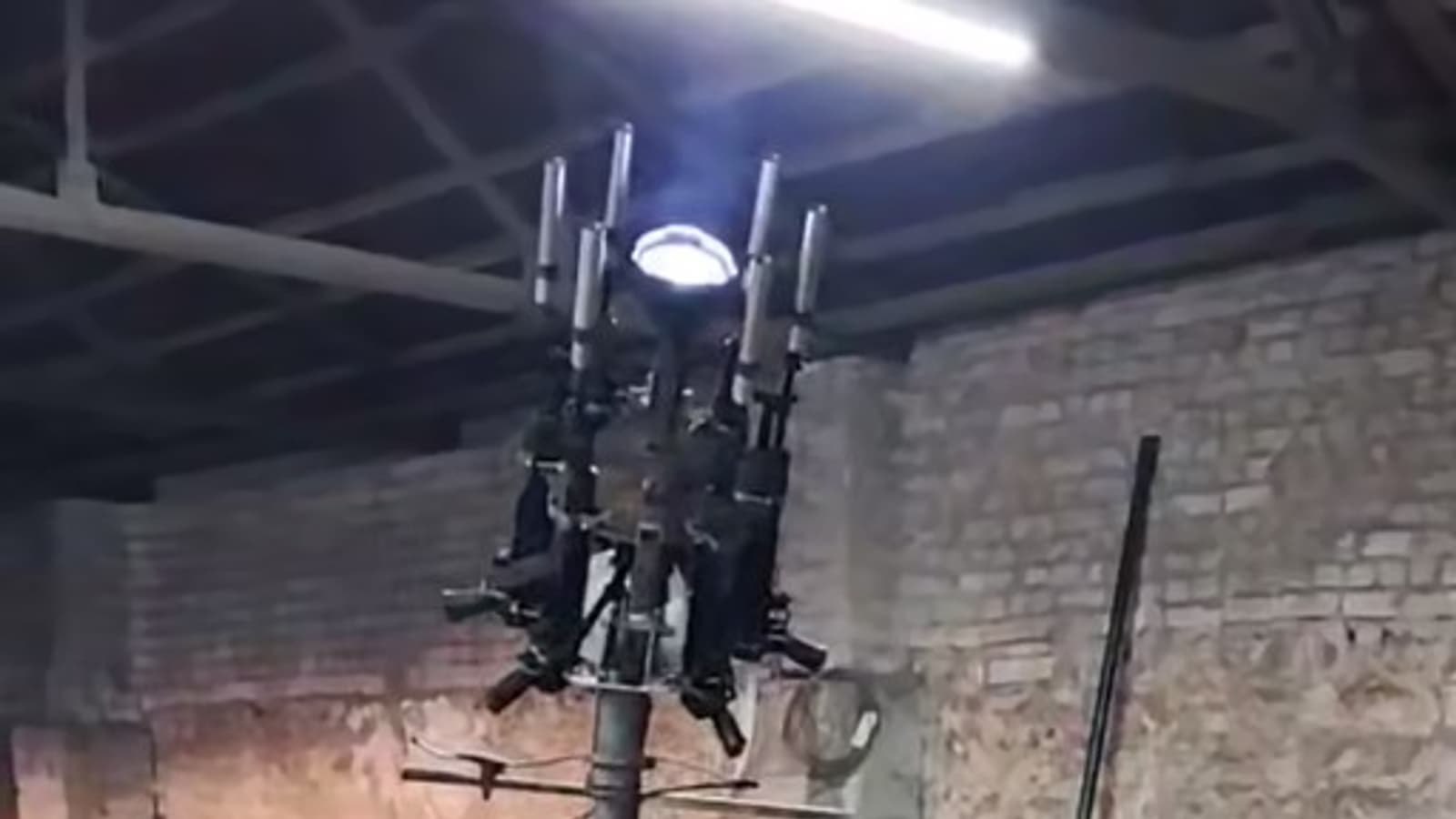 Русские умельцы разместили в коляске самодельную установку из шести автоматов Калашникова АК-12. Стрельба ведется синхронно с одной ручки управления.