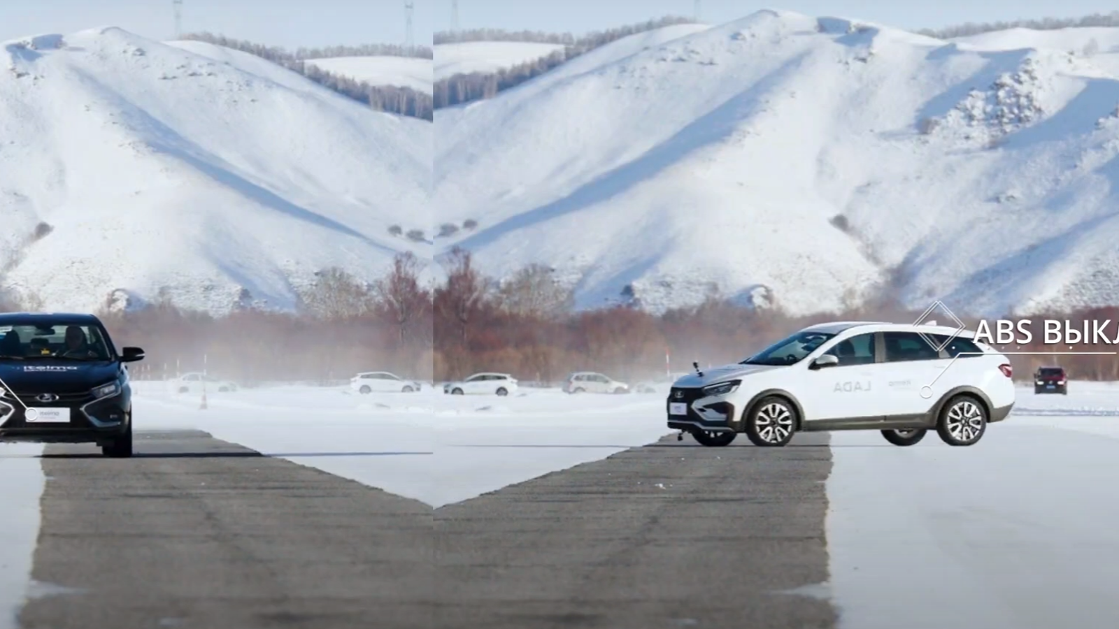 В условиях ограниченной сцепляемости Lada Vesta с ABS уверенно сохраняла траекторию, в то время как автомобили без антиблокировочной системы и электронной стабилизации курсовой устойчивости ESC теряют контроль и уходят в занос. Также были показаны возможности автомобилей с ESC в таких маневрах, как «лосиный тест» и слалом.