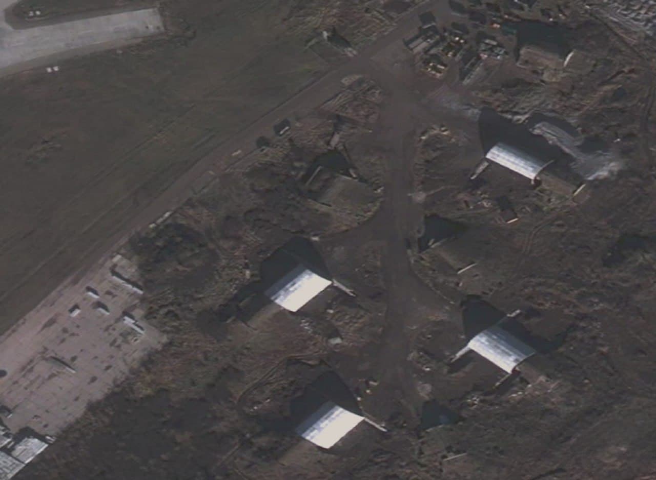 На снимках можно заметить как уже законченные ангары, так и ещё строящиеся. Фортификационные сооружения укроют боевую технику как от дронов-камикадзе, так и от дальнобойных тактических ракет.