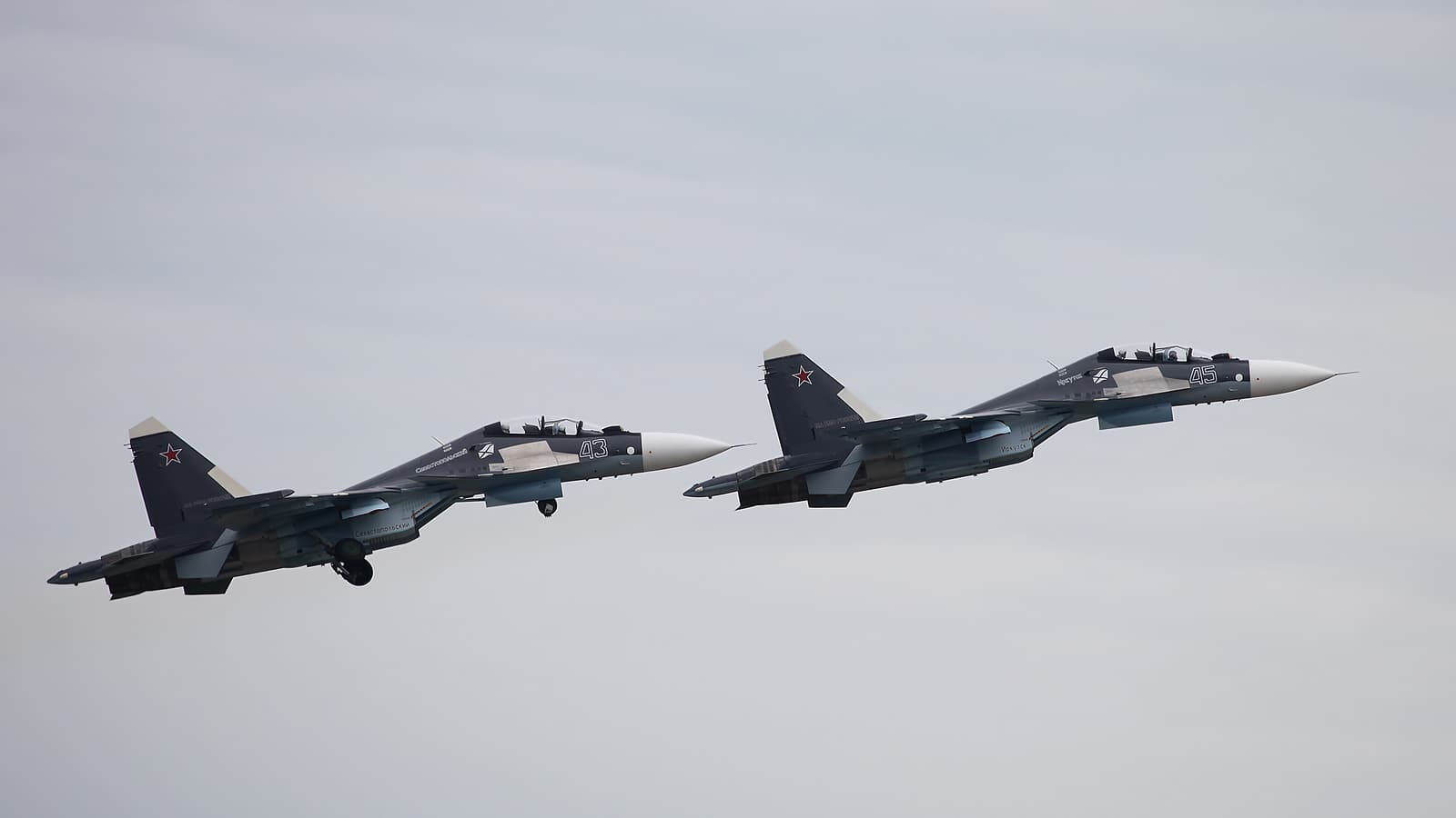 В ходе выполнения учебно-тренировочных полетов экипажи самолетов Су-33 и Су-30СМ перехватили неманевренную воздушную цель в облаках.