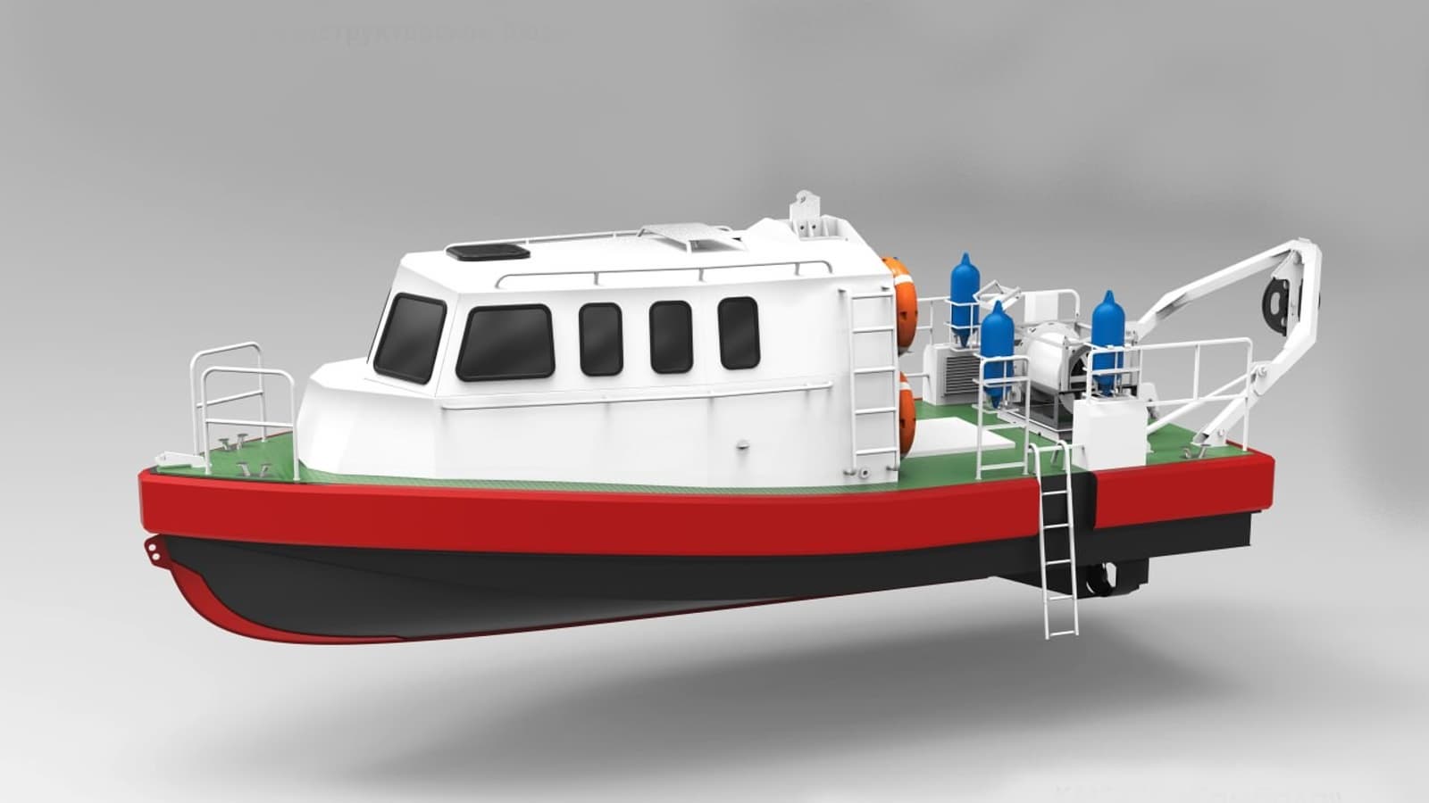 Экипаж катера — 6 человек. Корпус спроектирован с возможностью прохождения по битому льду.