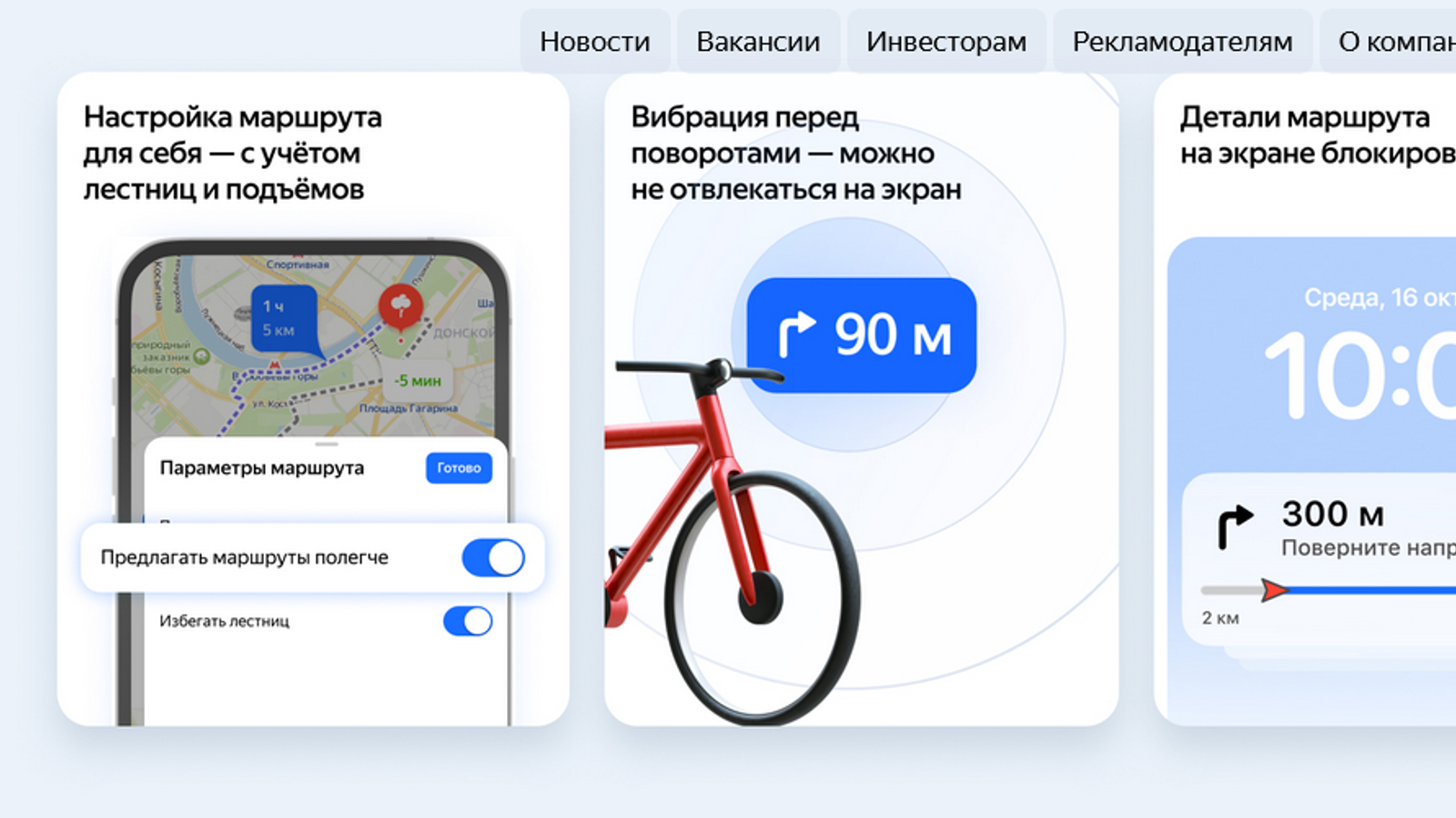 Теперь пользователям при построении маршрута доступна опция «Избегать лестниц». Сервис учтёт пожелание пользователя и подберёт маршрут без лестниц. Если же избежать лестниц совсем не удастся, тогда «Яндекс Карты» предложат маршрут с пандусами.