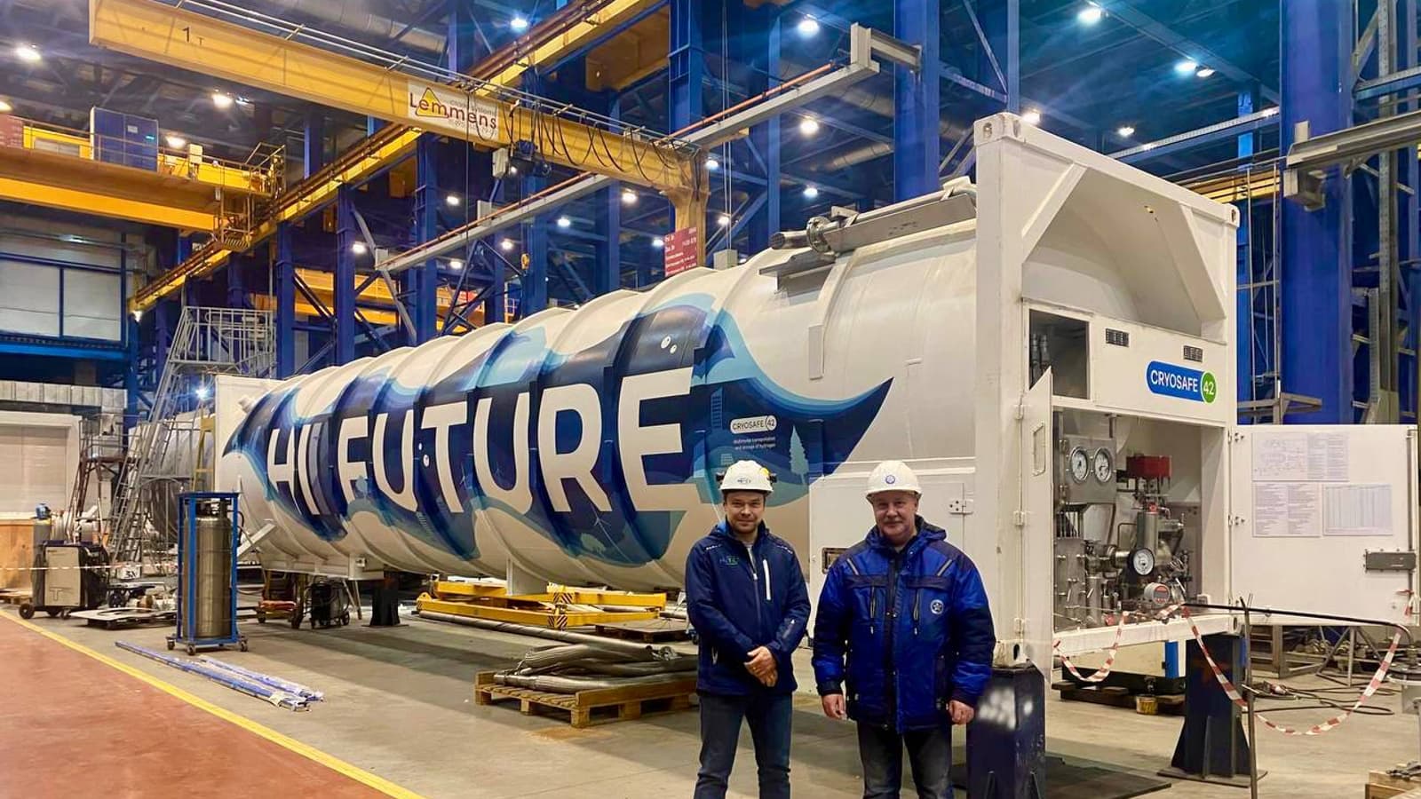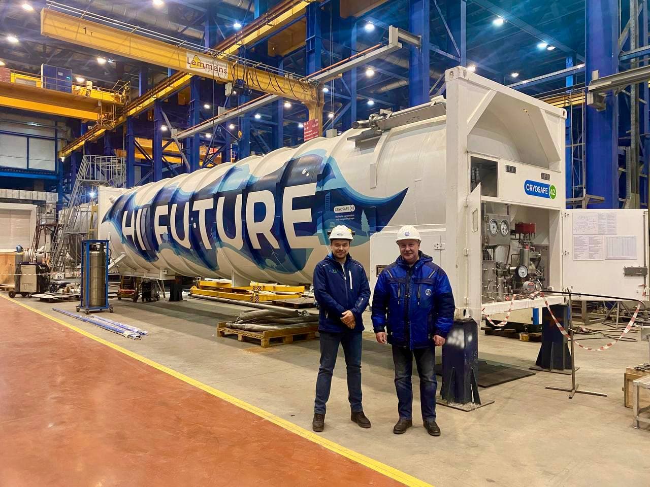 Это инновационное транспортное оборудование с экранно-вакуумной изоляцией. В контейнере-цистерне можно перевозить сжиженный водород при температуре -253° С морским, речным, железнодорожным и автомобильным транспортом.