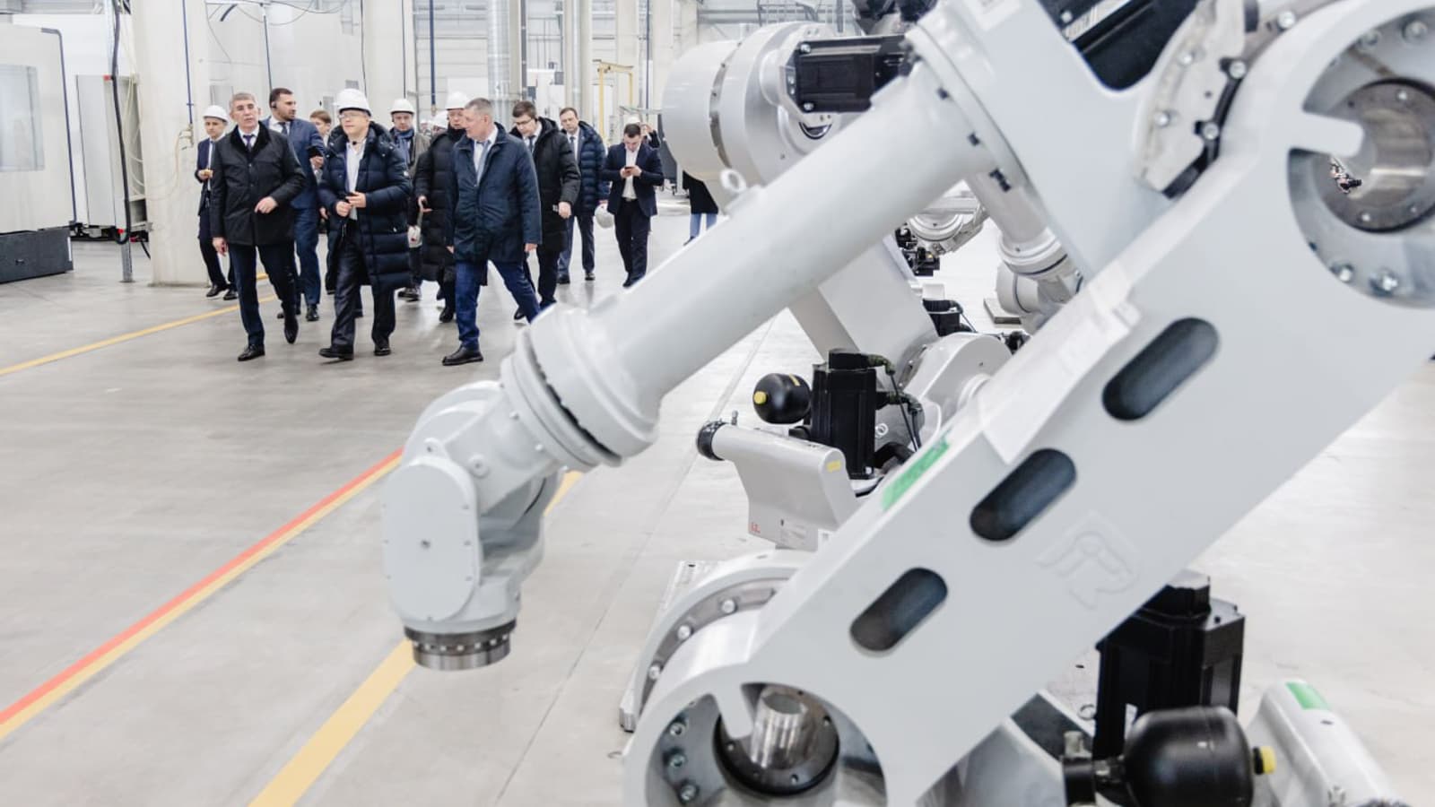 Роботы на заводе уже помогают обслуживать производственные линии: загружают изделия в станки, передают их дальше, контролирует процесс оператор. Безопасность на предприятии на первом месте: каждая рабочая зона огорожена. Роботы не могут приступить к работе, если рядом находится человек.