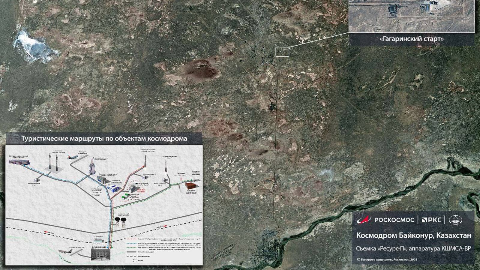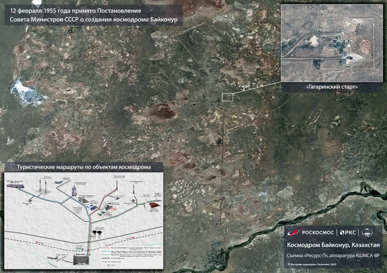 Российский аппарат дистанционного зондирования Земли «Ресурс-П» сфотографировал космодром Байконур к его 70-летию.