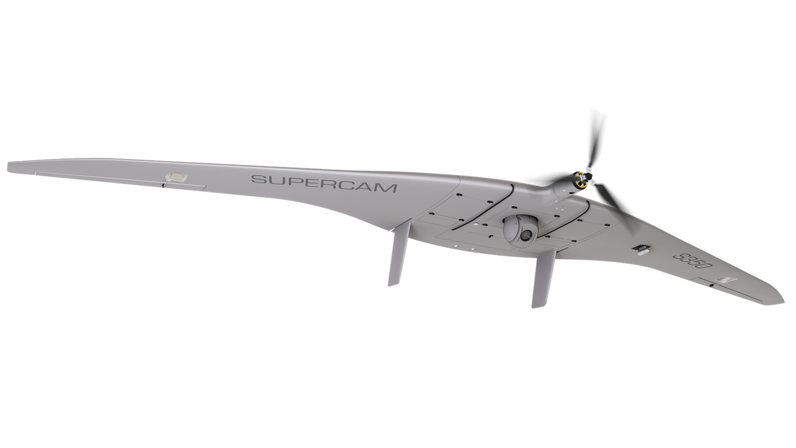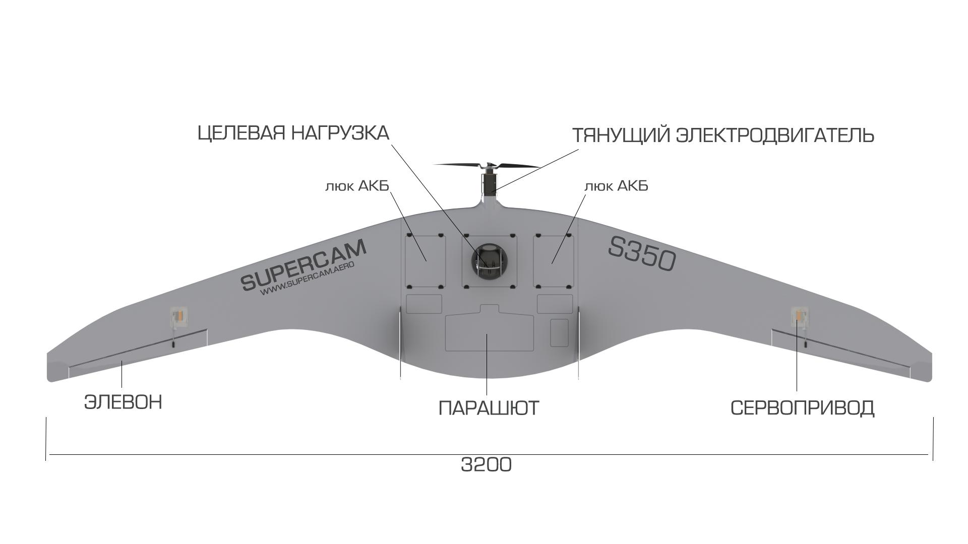 Supercam S350 — беспилотник легкого класса, дальность видеосвязи — более 70 километров. Он может выполнять задачи при любой погоде и в любое время суток. Дрон оснащен электрическим двигателем и почти бесшумен в полете. Запускается с катапульты, возвращается на базу — с парашютом.