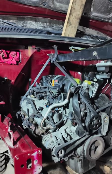 На появившихся в Сети кадрах можно увидеть, что для установки мотора переднюю часть кабины полностью разобрали, а сам моторный отсек обклеили дополнительной шумоизоляцией.