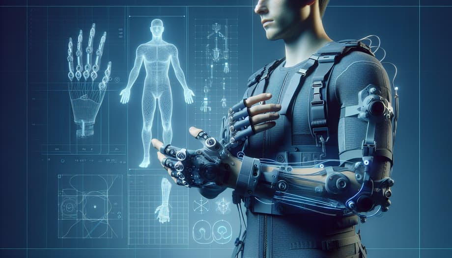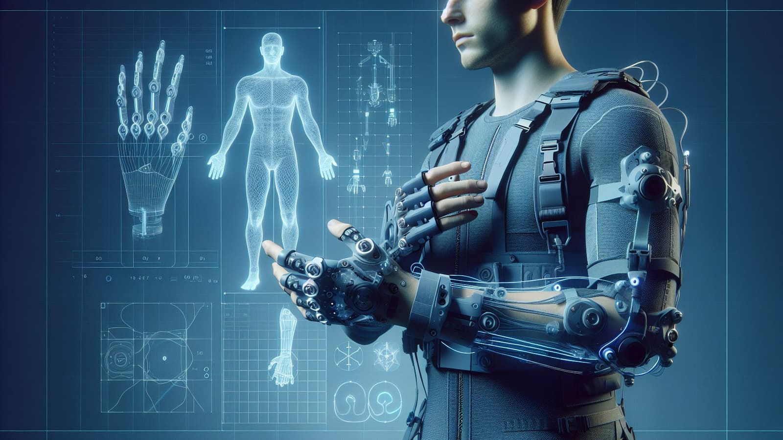 Эта разработка представляет собой уникальную мобильную систему управления манипуляторами с тактильной обратной связью. Устройство, которое можно носить на теле, состоит из каркаса, рукава и перчатки, оснащённой датчиками.