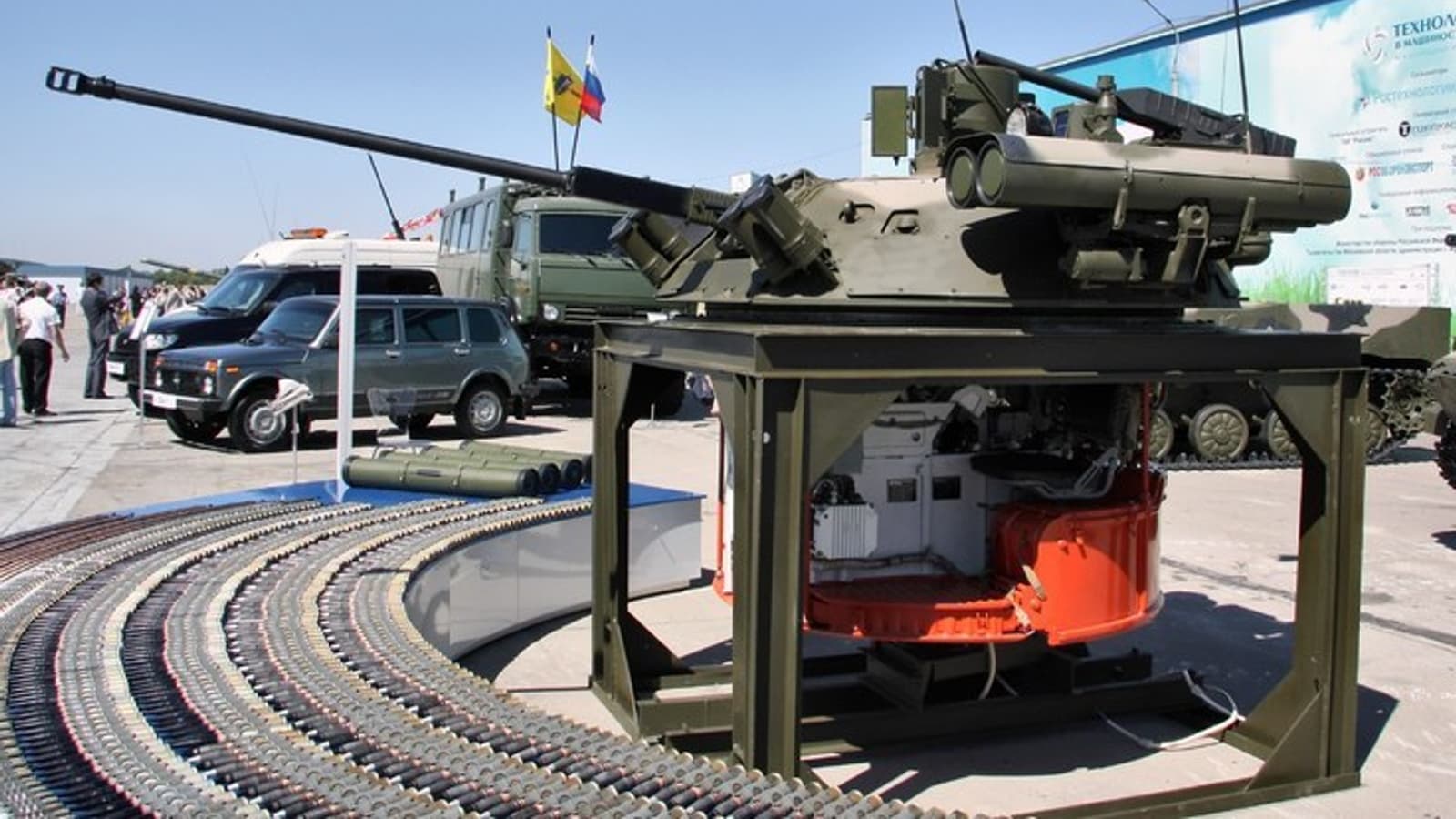 Впервые модифицированный стационарный «Бережок» представили на выставке «Флот-2024». В состав вооружения этого боевого отделения входят 30-мм автоматическая пушка 2А42, 30-мм автоматический гранатомет АГ-30М, 7,62-мм пулемет ПКТМ, а также две пусковые установки противотанковых управляемых ракет «Корнет» по две ракеты на каждой.