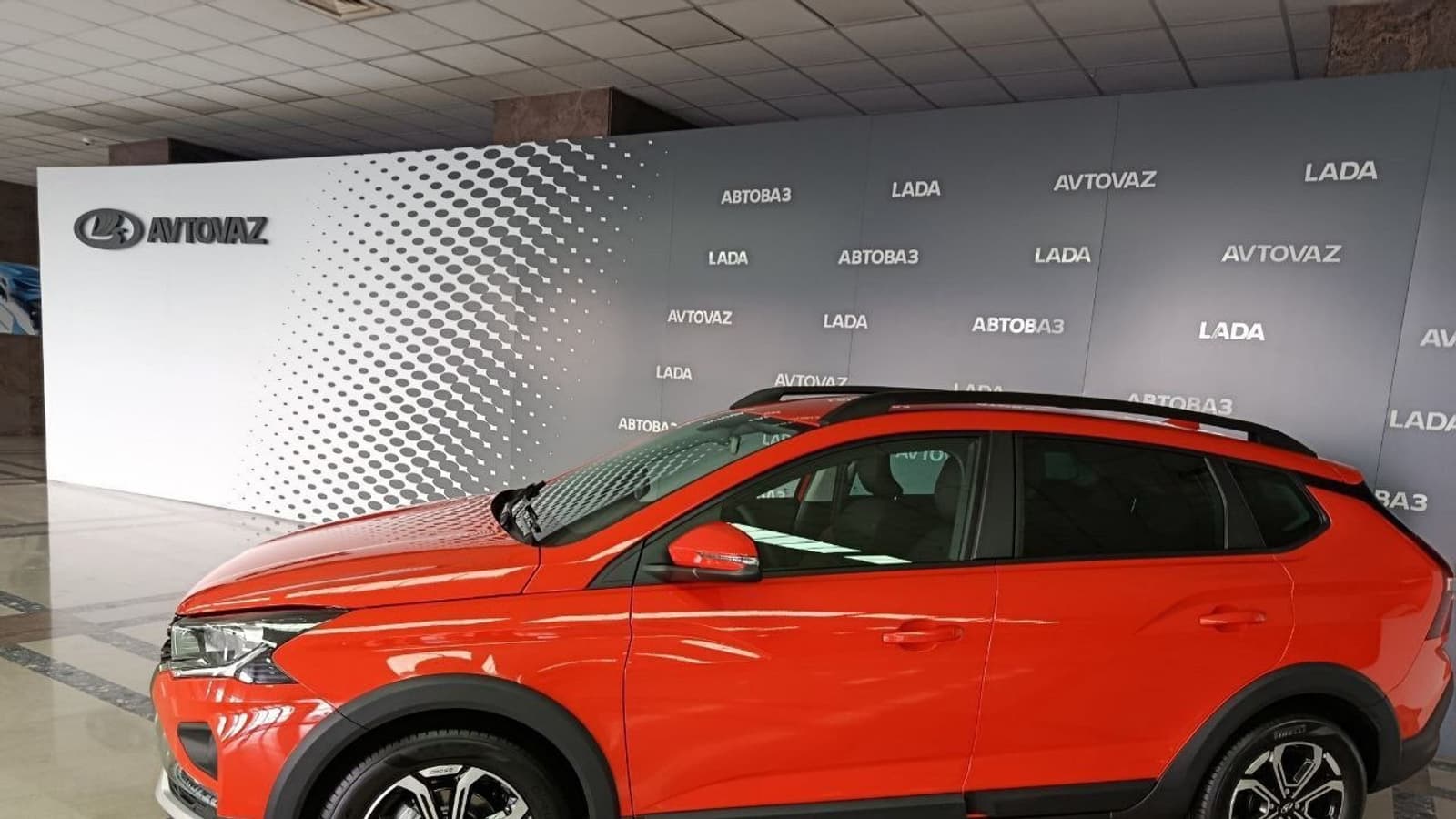 АвтоВАЗ представил новейшую Lada Iskra Cross на первом этаже своего офиса в Тольятти. Автомобиль презентовали в ярком цвете «Табаско».