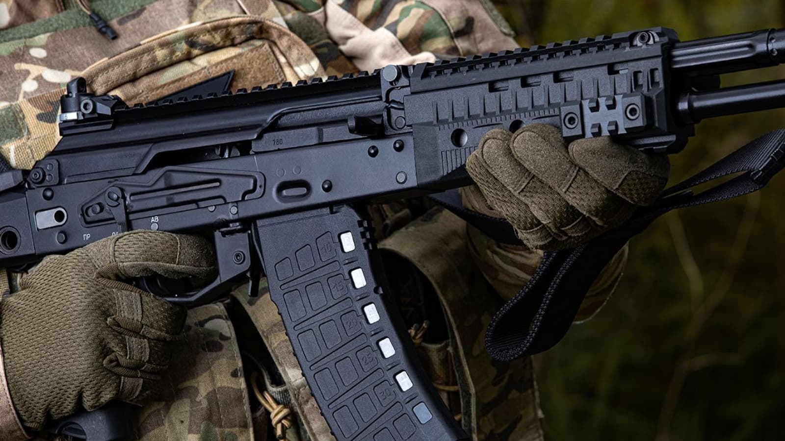 На кадрах можно увидеть, что магазин почти разорвало пополам. О состоянии бойца ничего не известно.